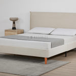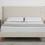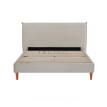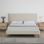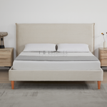 Rafiel Modern Bed Frame – Soft Oatmeal Fabric & Solid Wood Design