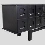 - Signature Design: Artistic circular patterns on doors and drawers create dimensional interest and modern appeal