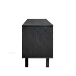 This compact mid-century dark waxed wood TV console combines French vintage aesthetics with smart storage solutions for small spaces. Featuring a footprint under 1㎡, it offers chest-like capacity with organized compartments for versatile media storage. The elegant metal pulls ensure smooth operation, while the elevated base allows effortless cleaning access. Distinctive ribbed doors add refined texture to your living space.