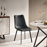 Clean lines meet everyday durability in these 33.5-inch brown dining chairs, designed for both style and practicality. The grid-textured PU seats offer waterproof ease and breathable comfort, while matte black iron legs deliver sturdy, scratch-resistant support.