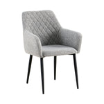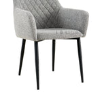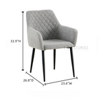 Elevate your space with this pair of 33.9-inch gray linen chairs, featuring a contemporary grid-pattern design on both seat and backrest. The matte black iron legs provide sturdy support while adding sleek, modern appeal.