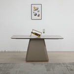 A stylish modern dining table that elevates your contemporary dining space with its sleek design. Crafted with durable materials, its rectangular surface is perfect for both everyday meals and special occasions.
