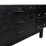 • Signature Design: Artistic circular patterns on doors and drawers create dimensional interest and modern appeal
