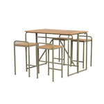 This 5-piece outdoor dining set features a foldable acacia wood table and four matching chairs  , designed for compact spaces and easy storage. The  acacia wood offers natural durability, weather resistance, and a rich woodgrain finish, while the sturdy iron frames  ensure stability. Foldable table design saves space when not in use.