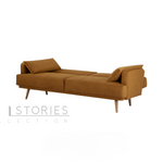The Liore Sofa Bed blends modern style with everyday comfort. Upholstered in soft 100% polyester fabric in a vibrant pumpkin color, it features bonded foam filling for supportive seating and sleeping. Built on a sturdy pine wood frame, it stands on birch legs finished in light coffee with a smooth spray-painted finish. Stylish and practical, the Liore easily transforms from a sofa to a bed—perfect for flexible, modern living spaces.