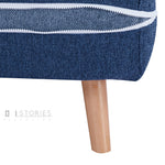 This contemporary sofa bed features a blue polyester upholstery with stylish zipper accents that reveal light blue fabric beneath when opened. The natural pine wood legs create a warm contrast, while the bonded foam cushioning provides all-day comfort. Supported by a sturdy pine wood frame, it easily converts from a sleek sofa to a comfortable bed—an elegant solution for modern living spaces.