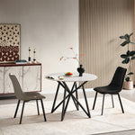 Clean lines meet everyday durability in these 33.5-inch brown dining chairs, designed for both style and practicality. The grid-textured PU seats offer waterproof ease and breathable comfort, while matte black iron legs deliver sturdy, scratch-resistant support.