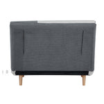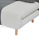 This modern-style sofa bed features a clean white and grey color combination that adds brightness and versatility to any room. Upholstered in 100% polyester fabric, it offers a smooth, durable surface that’s easy to maintain. The seat is filled with bonded foam, providing firm yet comfortable support. Built on a sturdy pine wood frame, this sofa bed also includes pine wood legs finished in a natural wood color with a clear varnish, adding a warm, organic touch.
