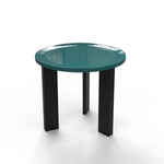 This elegant round table features a striking glossy teal finish complemented by black oak legs. Crafted from solid wood and plywood, it combines artistic design with durable construction. The vibrant teal surface creates a captivating visual effect, while the black oak base ensures stability and modern appeal.