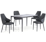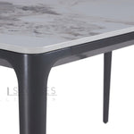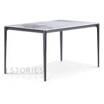 Presenting a remarkable round dining table designed to become the centerpiece of your dining area. Supported by four sturdy black metal legs, it offers both a stable foundation and a contemporary, sleek aesthetic. The tabletop is crafted from beautifully finished sintered stone in an elegant coffee base tone, where delicate coffee-white veins dance across the surface—smooth, rich in variation, and undeniably luxurious.