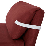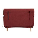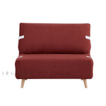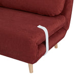 This modern-style sofa bed is upholstered in vibrant Chinese red 100% polyester fabric, creating a bold statement for any living space. It features a sleek silhouette with a distinctive white stripe detail, adding visual contrast and personality. The seat is filled with new foam, providing a comfortable and supportive sitting experience. The sturdy pine wood frame and matching pine wood legs, finished in a natural wood color with varnish, enhance both durability and organic charm. This piece requires simple assembly and functions as both a stylish sofa and a convenient bed.